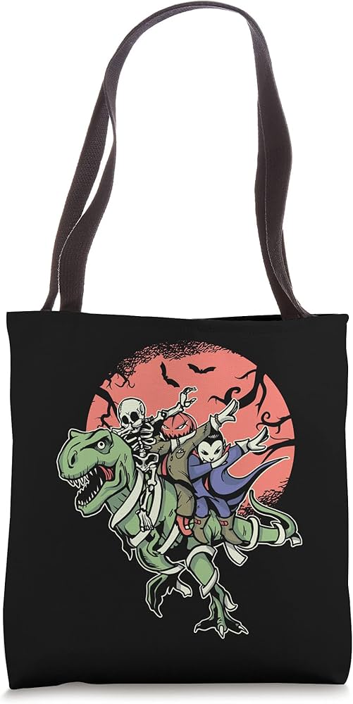 Amazon Com Dabbing Skeleton Pumpkin Vampire Riding On A Dinosaur T Rex Tote Bag Clothing Shoes Jewelry